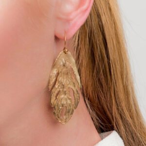 עגילים בצורת עלה, מיוצרים בטכנולוגיית יציקת שעווה ומיוצרים במהדורה מוגבלת.