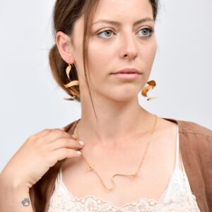 התליון עשוי בריקוע של חוט מפליז בעבודת יד ובציפוי לפי בחירה, זהב 24 קראט או כסף 925, השרשרת בציפוי זהב 24 קראט או מכסף 925סטרלינג בהתאם לצבע התליון